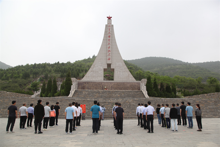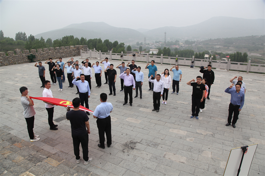 在抱犊崮抗日纪念园,大家怀着无比崇敬的心情,列队来到纪念碑前,面对鲜红的党旗,在集团党委副书记、总经理杜泽坦同志的领誓下,高举右手,重温入党誓词,用庄严的声音,表达不忘初心、牢记使命、永远跟党走的决心。随后,大家向革命烈士们敬献花篮,依次缓步绕行,瞻仰革命烈士纪念碑,深切缅怀革命先烈的丰功伟绩。最后,与会人员先后来到八路军第115师纪念馆、王麓水纪念馆、115师政治部等红色展馆,参观革命文物、历史图片等珍贵史料,聆听一个个动人的革命故事,亲身感受一件件革命文物背后的历史故事,进一步了解了八路军115师在鲁南的光辉历程和鲁南军民的抗日革命历史。
