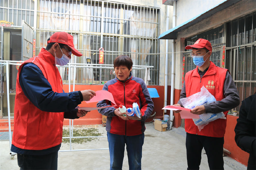 活动中,志愿者们身穿红色小马甲,三五人一组,在村庄道路两侧栽种行道树,清理垃圾、杂草、废弃砖石和卫生死角,大家干劲十足,团结协作,积极参与到环境保护志愿服务活动中,为村民打扫出了一个干净舒适的生活环境。针对当前防疫形势严峻的情况,志愿者们还分头到该村村民家中发放防疫宣传页,积极向村民宣传新冠疫情防控安全知识,提醒村民做好戴口罩、勤消毒、勤洗手等常态化防控措施,并向村民发放口罩、酒精、84消毒液等防疫物品。