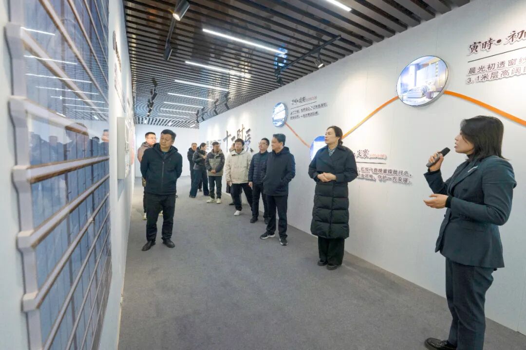 专家团深入项目施工现场实地考察,并参观了样板间。通过查阅工程资料、对照评估标准,从建筑风貌、工程质量、空间规划等多个维度进行全面查验。在随后的座谈会上,专家团认真听取了项目建设工作汇报,详细了解项目规划布局、施工进展及品质管控等情况,并围绕户型设计、隔声防渗技术应用、绿色建材选用等关键环节,与项目相关负责人展开深入交流,提出了专业且具针对性的优化建议。